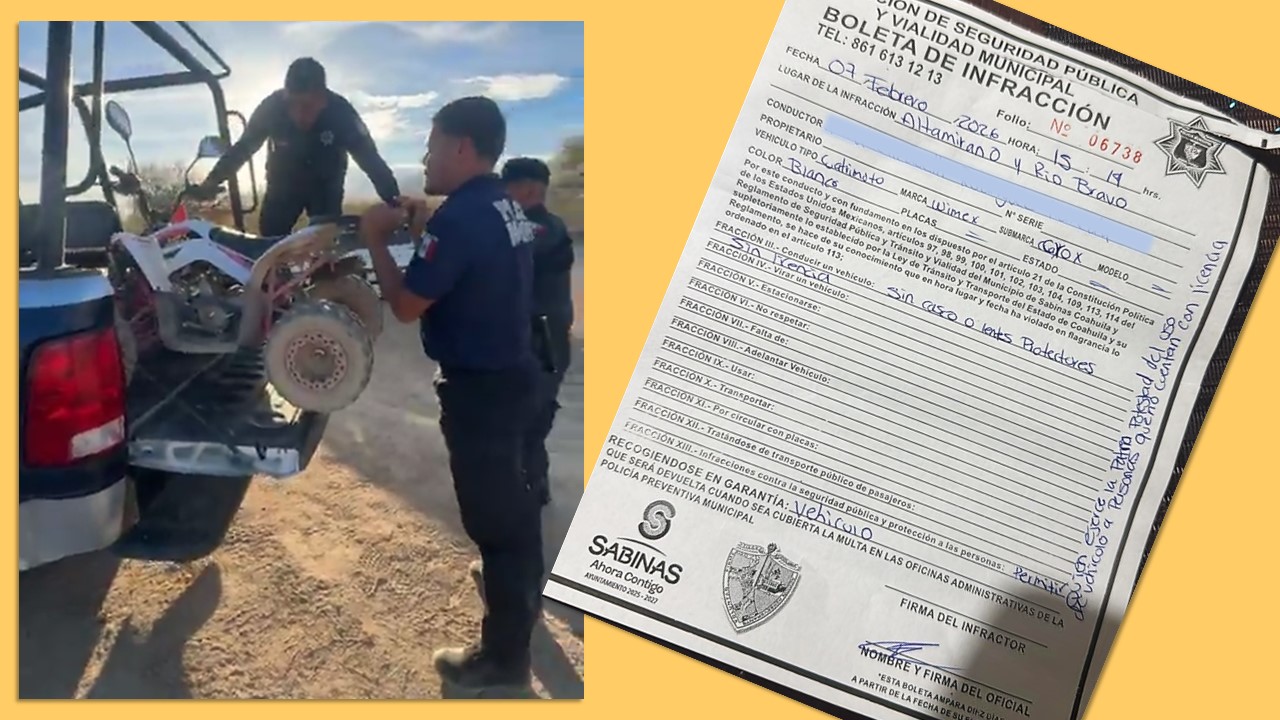 VITRALIA | Sabinas | febrero 13, 2026. – En un hecho inédito, agentes de la policía y tránsito de esta cabecera municipal infraccionaron a una niña de tan solo nueve años de edad por no portar licencia para conducir, entre otros ilícitos.