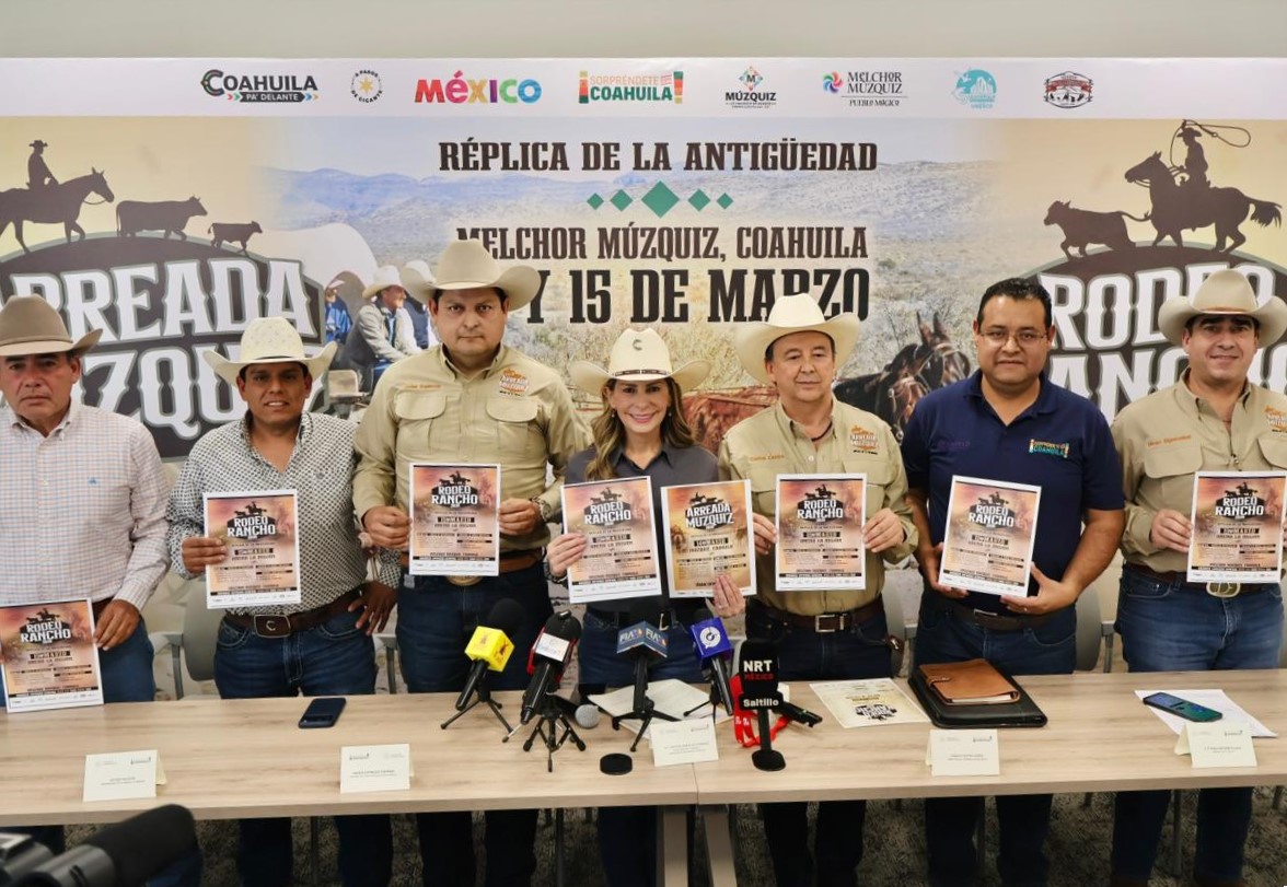 En la capital del estado, anunció la Arreada Múzquiz y el Rodeo Rancho 2026, programados para el 14 y 15 de marzo, respectivamente.