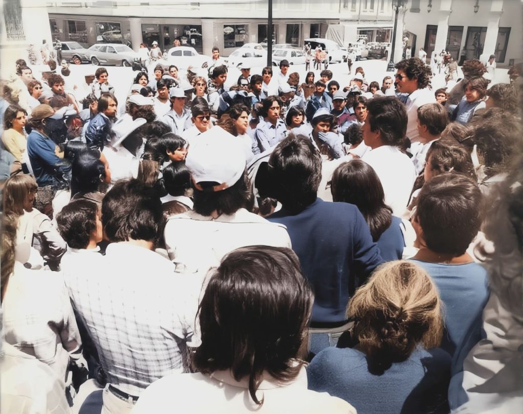 La Plaza de Armas, que siempre había sido escenario de domingos familiares, de helados derritiéndose y de niños correteando palomas, ese día parecía otra cosa. Un animal viejo que despierta. Un altar civil. Un territorio que por fin recordaba que también podía ser pueblo.