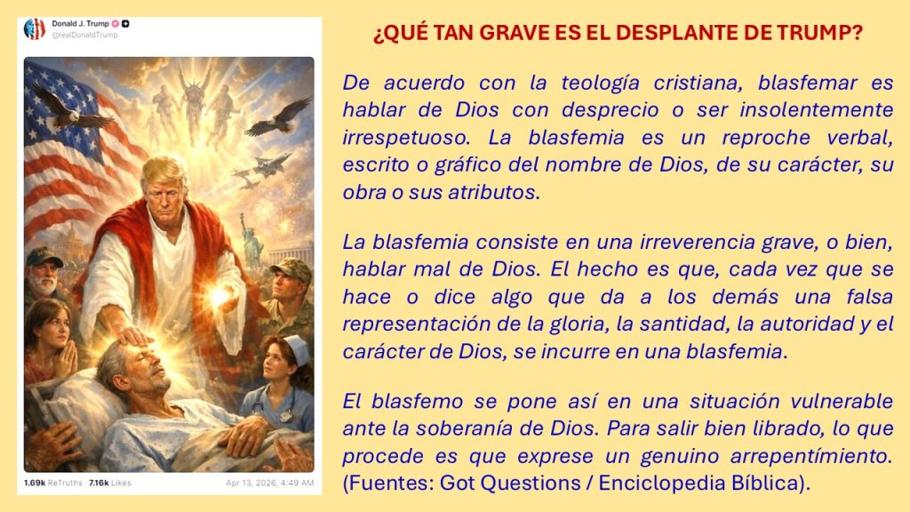 Una publicación en la que Donald Trump se hace pasar por Jesucristo coincide con el abandono de las conversaciones diplomáticas con Irán respecto del Estrecho de Ormuz y con una serie de ataques verbales hacia el papa León XIV, quien dijo que no le tiene miedo al mandatario.