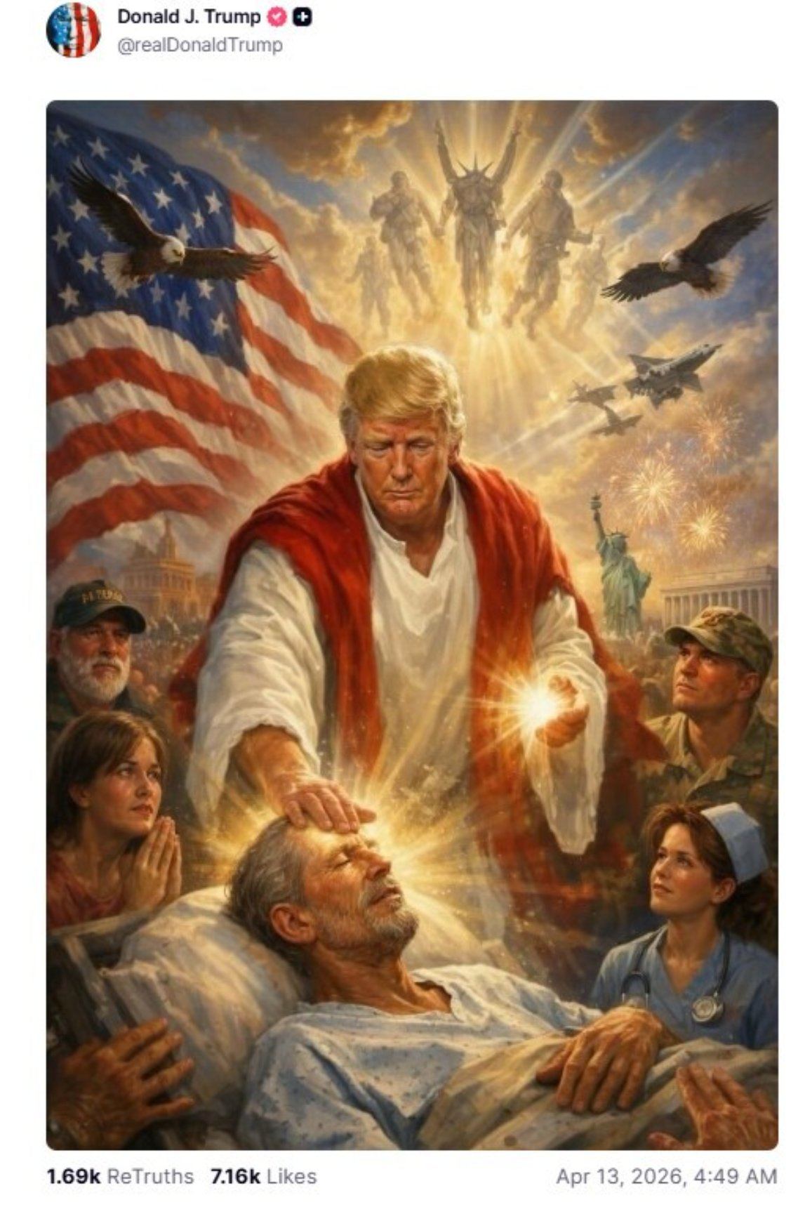 El presidente de Estados Unidos, Donald Trump, utilizó su plataforma Truth Social, para difundir una ilustración creada con inteligencia artificial en la que aparece personificando a Jesucristo.